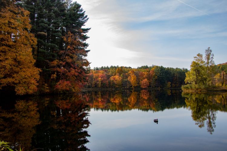 Ray Lake 1 ~ Carlos Passi ~ Photograph ~ 8×12 ~ $75 ~ Ray Lake is one of my favorite locations to visit with FrOGS, offering natural beauty and many of the ecosystems that make the Great Swamp so special. This particular visit at the peak of fall, with crisp air and full of color, was a particular gem. A walk around the lake gave me the opportunity to capture its beauty. In this view of the lake, the color of the vegetation, the stillness of the water, like a mirror, gives it a special harmony and balance that seems ethereal. Click here to buy.