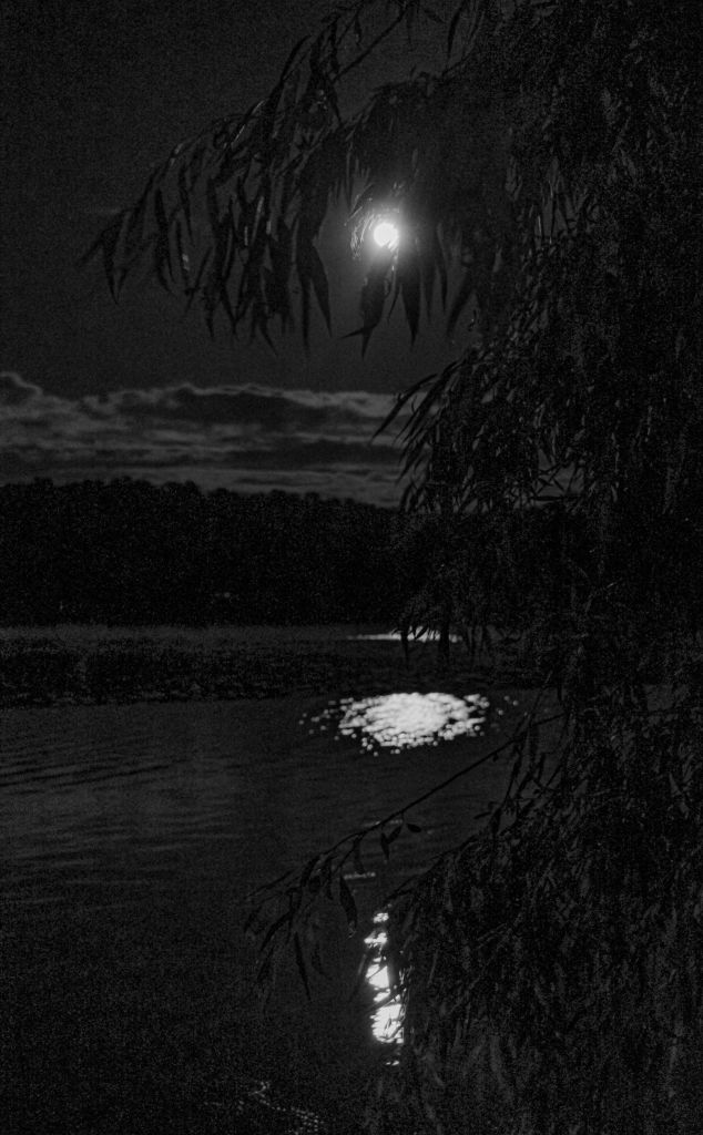 Moon Reflection ~ Claudia Griswold ~ Photograph ~ 16×20 ~ $150 ~ Warren Beach, Putnam Lake. It was a chilly November evening when the full moon peeked thru the grand Willow tree and the light shimmered. Click here to buy.