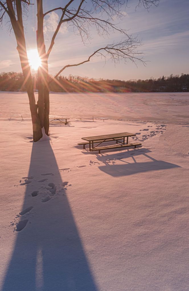 Starburst Shadow ~ Claudia Griswold ~ Photograph ~ 16×20 ~ $150 ~ Jackson Beach, Putnam Lake. On a windy, cold, snowy winter day, I watched for over an hour, the sun at just right height above the tree line and between the trunks of my favorite old tree. I laid in the snow to get the right angle-it didn’t disappoint. Click here to buy.