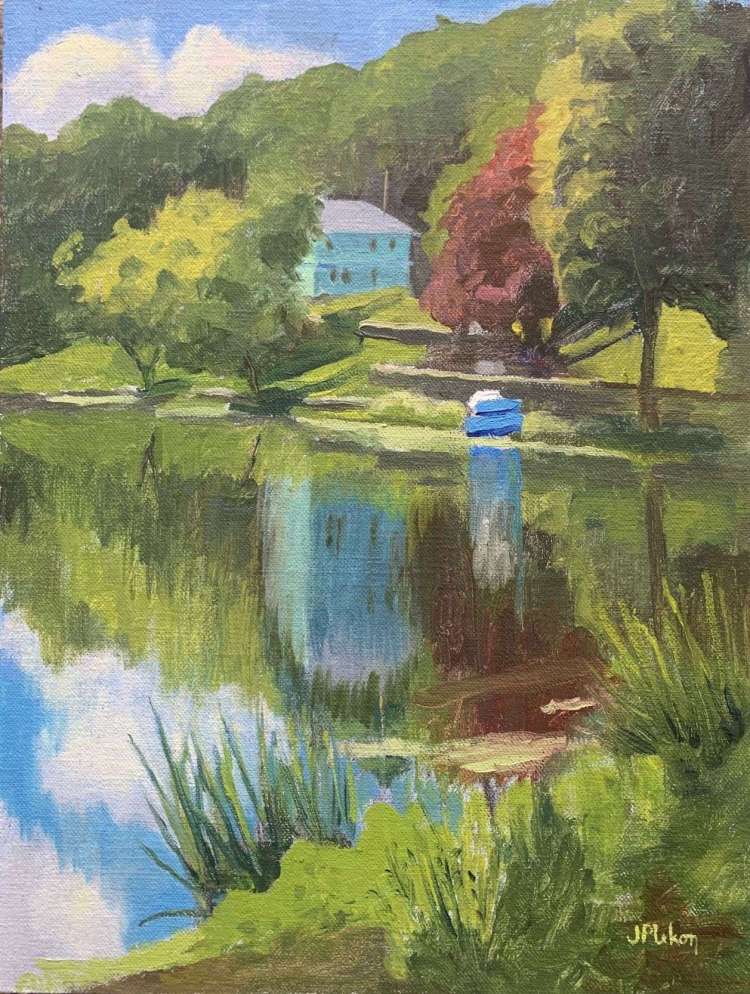 Summer Afternoon ~ Alicia Earle ~ Acrylic ~ 11×14 ~ NFS/$65 prints ~ This is my second painting of Putnam Lake, over the dam. The lake encompasses 225 acres and is man-made. I’m inspired by the quality of life here, as it offers swimming, fishing, and boating, along with other activities. It is surrounded by a small, friendly community. Click here to buy.