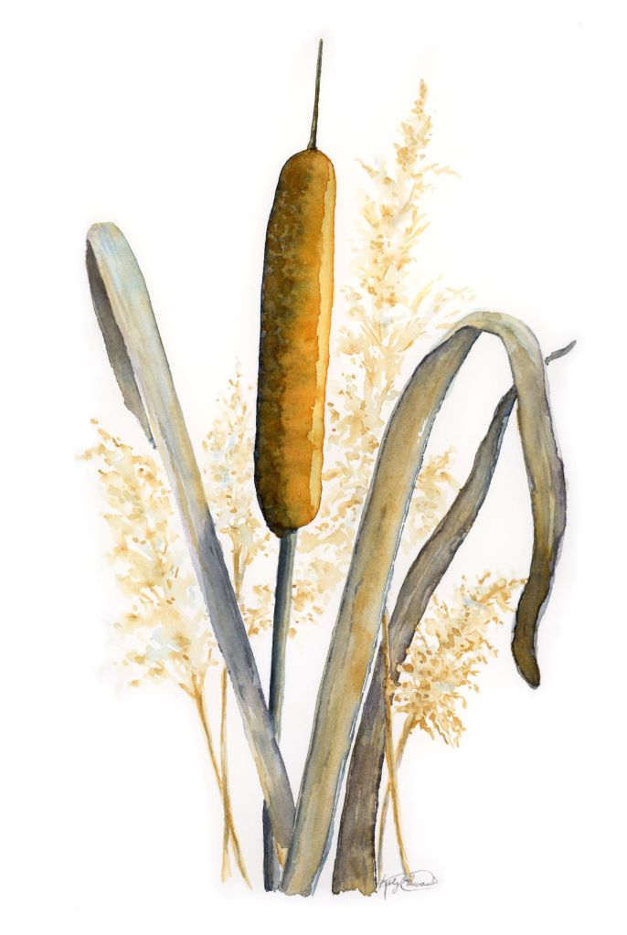 Cattail ~ Kelly Edwards ~ Watercolor ~ 16×20 ~ $150 ~ I have always been drawn to Cattails in the Great Swamp as they remind me of my youth growing up in South Carolina. I wanted to highlight that bit of nostalgia and share the beauty of a piece of nature, that I think, goes too unsung. I do love spying the Red Winged Blackbirds putting the Cattails to good use as well. [SOLD]