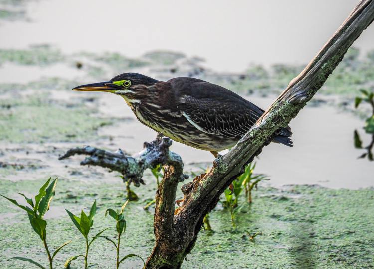 Green Heron ~ Linda Hubbard ~ Photograph ~ 11×14 ~ $95 ~ Evenings at the Wimisink swamp bring out this Green Heron looking for his dinner. [SOLD]