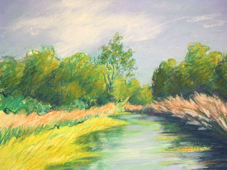 The North Flow ~ Nancy Clark ~ Pastel ~ 15×18 ~ $75 ~ I always love this view of the North Flow by the railroad station in Wingdale. Whatever the season or weather I always slow my car down to observe – it seems placid and peaceful, and the colors always reflect the season. Click here to buy.