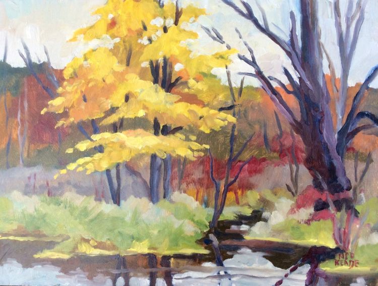 Yellow Tree, Great Swamp ~ Ned Reade ~ Oil Paint ~ 12×16 ~ $275 ~ I enjoy the painting at the Zaengle Preserve along River Rd in Pawling. Morning light or afternoon light make the fall colors sparkle. I love hearing the spash of a fish, or the “whoop, whoop” of a crane or egret along the edge of the water. This place for me is like the waterlilies were for Monet! Click here to buy.
