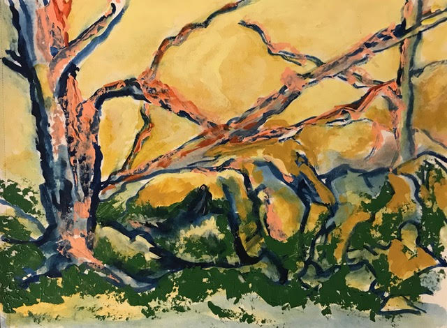 Brandon Preserve: After the Storm ~ Sharon Nakazato ~ Mixed/Media/Acrylic ~ 14×19.5 ~ $275 ~ After one of our recent intense storms I visited the Preserve and was struck by the way the trees held even the fallen branches, and by the brilliance of the light in the wake of the tempest: something about the sturdiness of nature and the torsion in the stillness. Click here to buy.