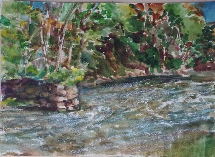 The Falls at Brookby Farm ~ Susan Hennelly ~ Watercolor ~ 16×20 ~ $300 ~ We were given special permission to paint on Steve’s farm. Very exciting to hear the power of the falls and painting at water’s edge of the Swamp River. Click here to buy.