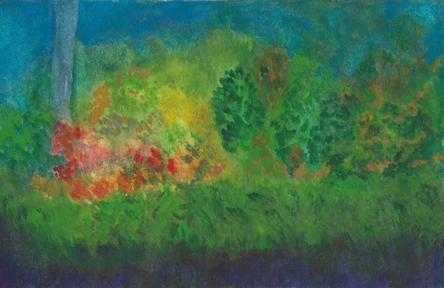 Night Comes to the Reservoir ~ Sharon Nakazato ~ Oil Pastels ~ 14×15 ~ $275 ~ Whenever I came back home by train from the city in the evening, I was moved by the warmth of the evening light over the richness of the Swamp from the dam and northwards. Click here to buy.