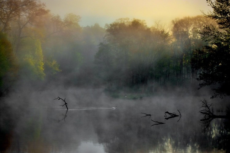 Alice Lynn ~ Misty Morning, East Fork of the Croton River ~ Photograph ~ 12×18 ~ $150 ~ On my early morning walk along the East Branch of the Croton River where it flows into Diverting Reservoir below the Village of Brewster, I greet our nesting swans through the rising mist. Early Spring 2023, Brewster, NY