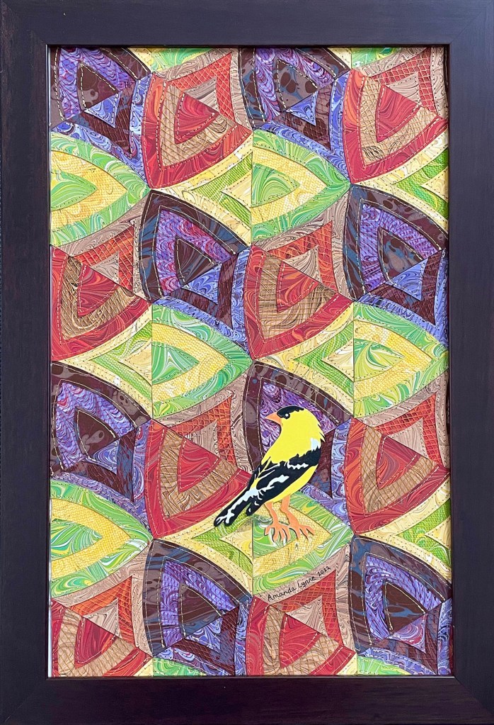 Amanda Lynne ~ The Goldfinch ~ Mixed Media ~ 19×13 ~ $400 ~ The goldfinches that flit through the swamp sparkle in the sun like specks of gold. Their vibrant color is always a surprise that takes my breath away.