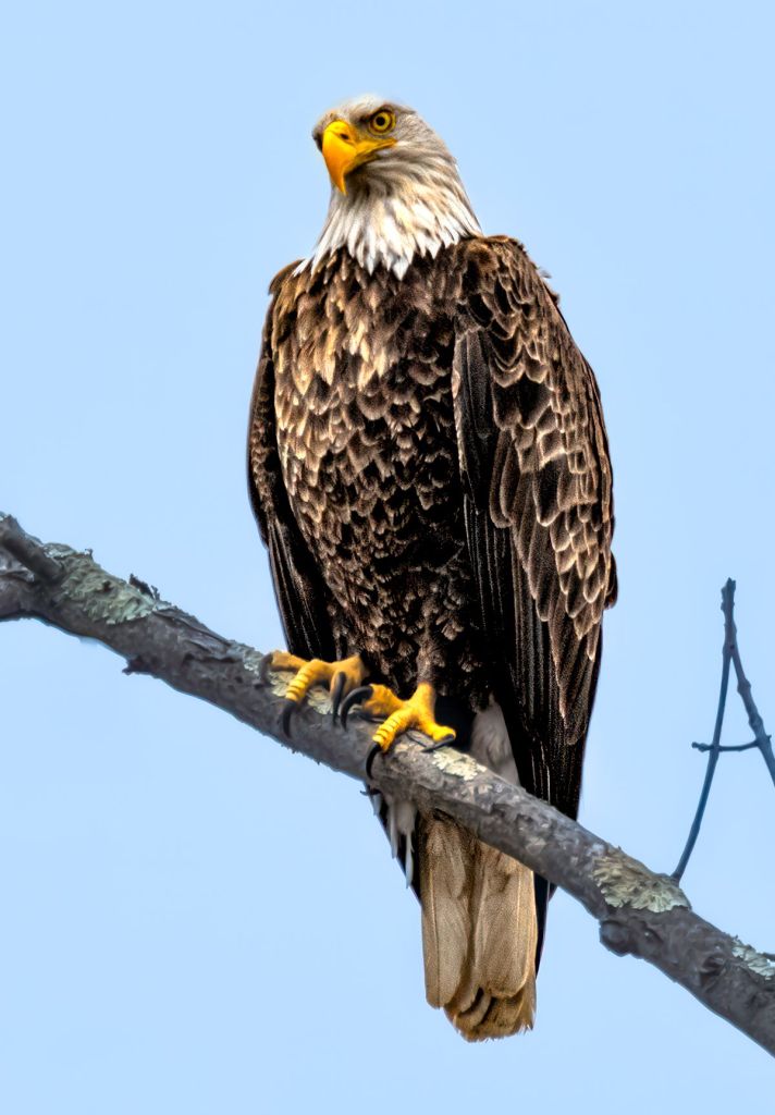 Claudia J Griswold ~ Eagle ~ Photograph ~ 18×22 ~ $200 ~ This mature Bald Eagle was surveying Cranberry Mountain WMA in Patterson. I hoped it would hunt and return with prey. The area is very diverse but it was amazing to see this majestic raptor perched waiting to fly off to defend its territory or hunt.