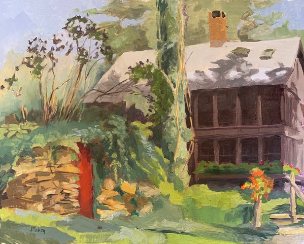 Jeanne Plekon ~ The Red Door ~ Oil ~ 11×14 ~ $450 ~ Attracted by the red door surrounded by vines, backdrop of the house from the 1800’s, at Ray Lake, Pawling
