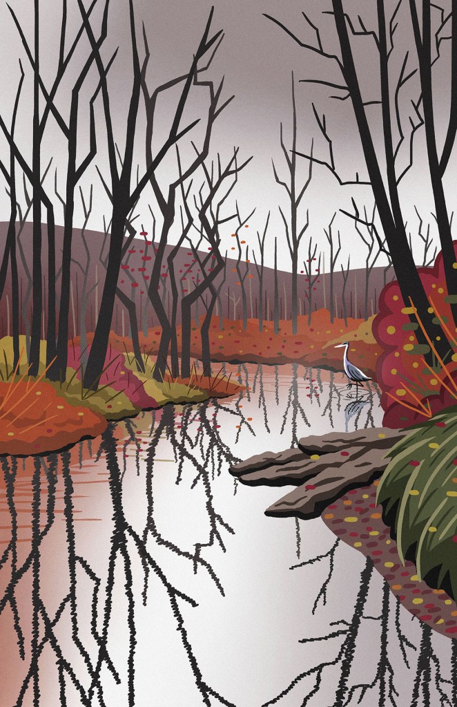 Jennifer Leibnitz ~ Fall Day ~ Digital Painting ~ 11×17 ~ $50 ~ Patterson Environmental Park is very special to me. I love to kayak on the swamp and my mom and I walk our dog here often. Autumn is my favorite time of year with the change of the leaves and the cool crisp air. It’s always exciting seeing wildlife on the swamp, especially the great blue heron.