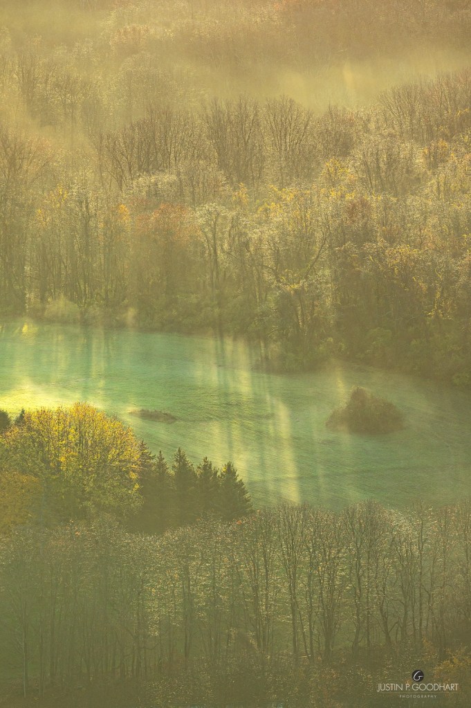 Justin P Goodhart ~ Dew Glint, Cat Rocks ~ Photograph ~ 16×20 ~ $147 ~ Looking down from Cat Rocks, like the sparkle of a billion diamond flecks shining through the morning mist. The newly bare trees still found a way to show off.