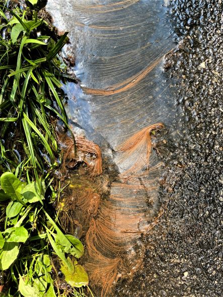 Bella Dalton-Fenkl ~ Fan shaped Jelly Fungus ~ Photograph ~ 10×8 ~ $200 ~ Another photo from the Swamp River boardwalk. Macro shots of fungi are often favorites of mine. I find the differences in texture between the boards and the jelly-like surface of the fungus fascinating, and the shapes of the fungus resemble hands reaching up out of the swamp below.