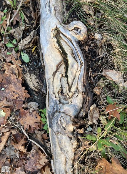 Linda Horton ~ Monster Log Face ~ Photograph ~ 8×10 ~ $125 ~ Kayaking from Wingdale in the Great Swamp last spring this face appeared with the clouds in a tree stump in the mist!