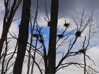 Linda Horton ~ Great Blue Heron Condos ~ Photograph ~ 8×10 ~ $125 ~ Kayaking from Wingdale in the Great Swamp in a secluded area the trees were full of heron nests a sight to behold from the water level.