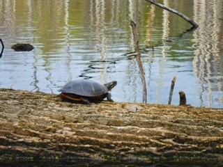 Linda Horton ~ Sunning Turtle ~ Photograph ~ 8×10 ~ $125 ~ While kayaking from Green Chimneys this spring in the Great Swamp this turtle was sunning itself on a log, others jumped in the water before I could snap the camera.