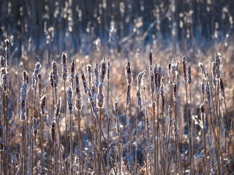 Linda Hubbard ~ Winter Cattails ~ Photograph ~ 16 x 20 ~ $175 ~ Beauty is always in the eye of the beholder…. even the cattails at the end of their cycle are beautiful.