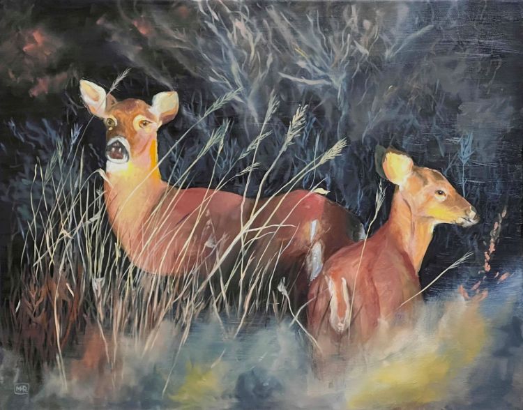 Mark Rosengarten ~ Oh Deer! ~ Oil ~ 16×20 ~ $800 ~ A mother and her child enjoy a balmy spring morning together. So much to teach in so little time.