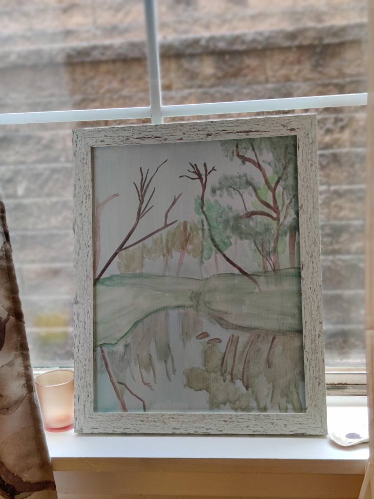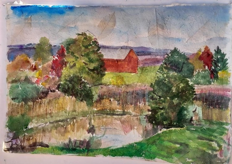 Susan Hennelly ~ Little Pond ~ Watercolor ~ 27×21 ~ $400 ~ Plein Air at my farm on Chestnut Ridge, Dover.