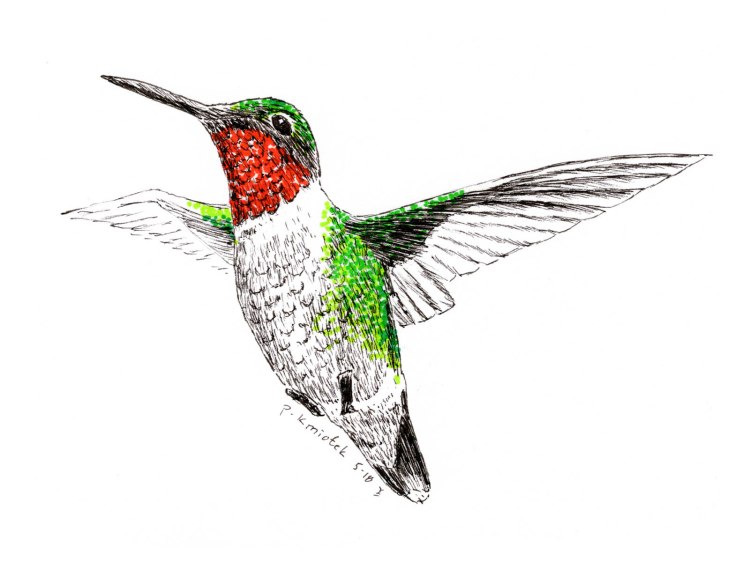 Paul Kmiotek ~ Ruby-throated Hummingbird ~ Pen and Ink ~ 5×7 ~ $125