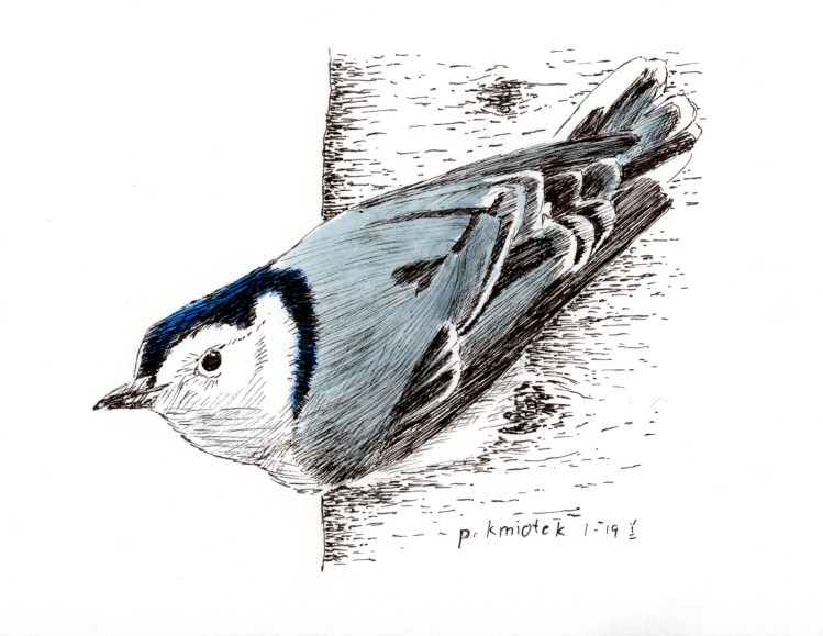 Paul Kmiotek ~ White-breasted Nuthatch ~ Pen and Ink ~ 5×7 ~ $125